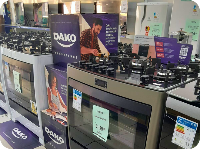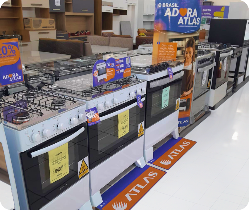 Em 2024, a Atlas e a Dako Eletrodomésticos iniciaram uma parceria estratégica com a Layer Up para fortalecer a presença de marca no ponto de venda. O foco estava em potencializar as vendas e traduzir o posicionamento institucional das marcas para materiais visuais impactantes e funcionais, pensados para diferentes canais de venda.